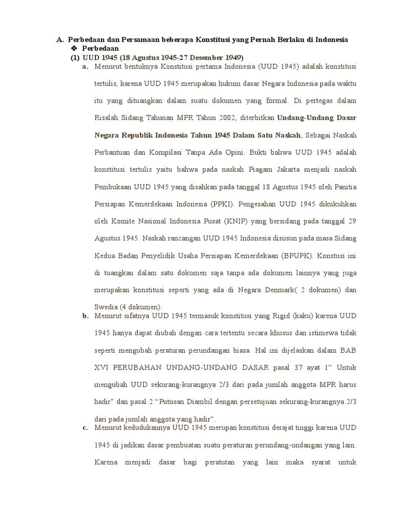 Ini adalah perbedaan antara konstitusi dan peraturan. 1996:265), yang akan menjadi pembahasan disini ialah dimanakah letak persamaan dan perbedaan dari uud 1945, konstitusi ris dengan uuds 1950. Istilah konstitusi sering diterjemahkan atau disamaartikan dengan uud. , ditemukan dalam mukadimah pembukaan uud nri tahun 1945,. Perbedaan uud 1945, konstitusi ris, dan uud 1950 1.